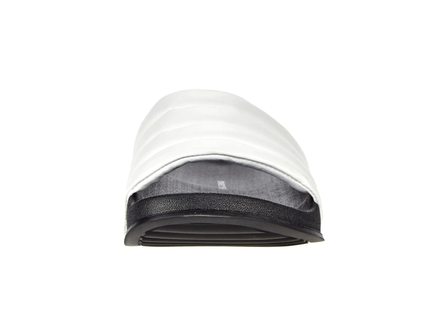 - Slip on construction in a round, open toe silhouette with a contoured footbed.