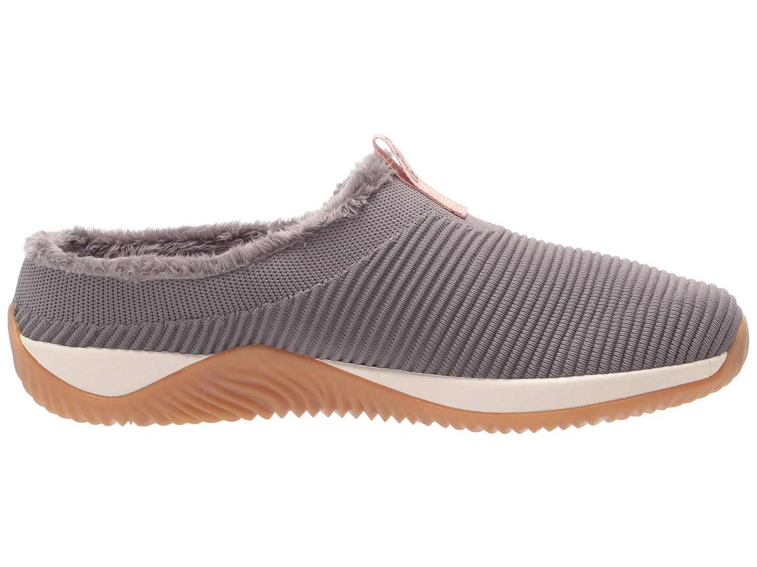 - Ribbed and woven fabric upper.