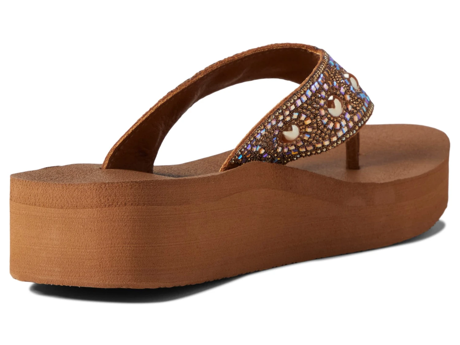 - Thong sandal with 3D dome embellishments and a patterned jewel embedded leather strap.